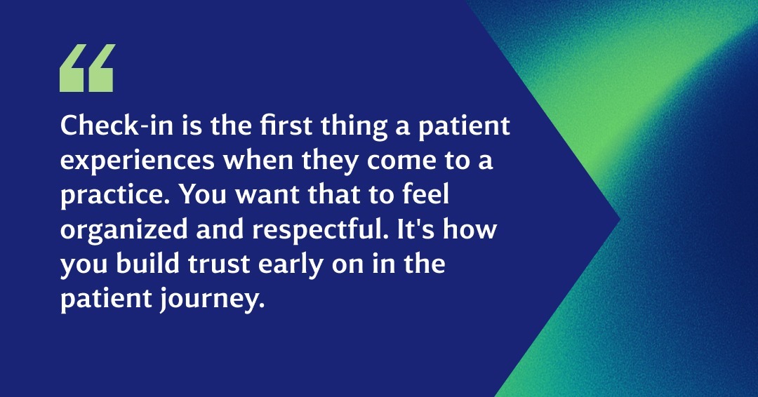 Check-in is the first thing a patient experiences when they come to a practice. You want that to feel organized and respectful. It's how you build trust early on in the patient journey.